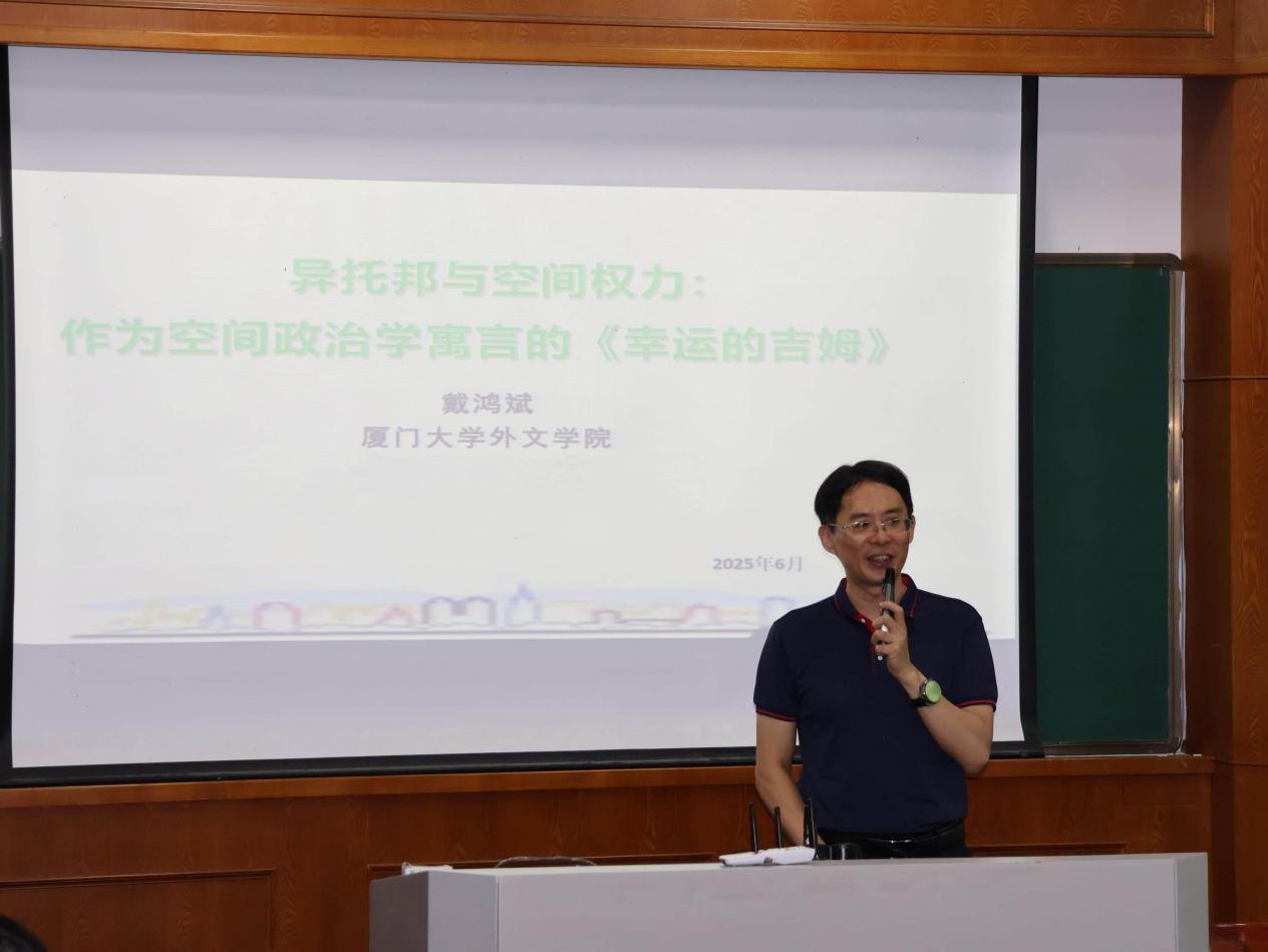 戴鸿斌教授以空间政治学重读《幸运的吉姆》,诠释权力叙事在文学中的恒常与流动;江桂英教授用主题浸润式课程示范,把课堂难题转化为教学方案。两场报告互为呼应,也印证了周郁蓓院长提出的“让科研成为终身阅读与思考”的倡议。